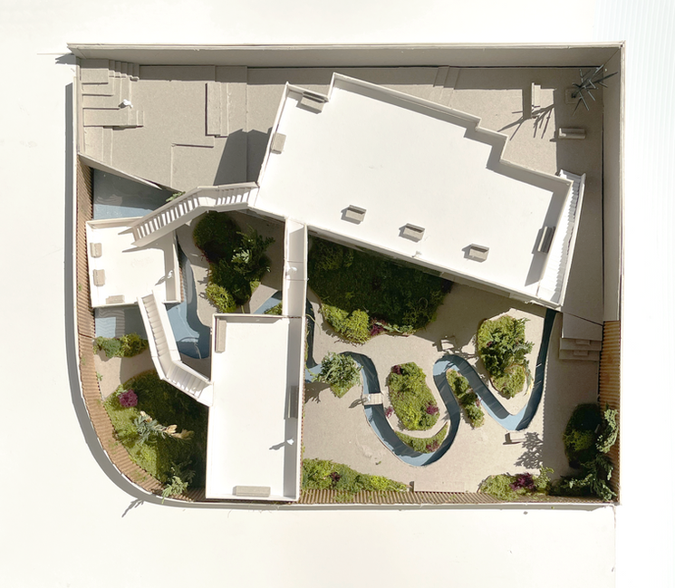 Progressing further down into the courtyard that sits 17 feet underground, the earth acts as a boundary between the site and the surrounding urban context. In the midst of this busy intersection, the sunken courtyard brings tranquility and calmness to people in Georgetown.